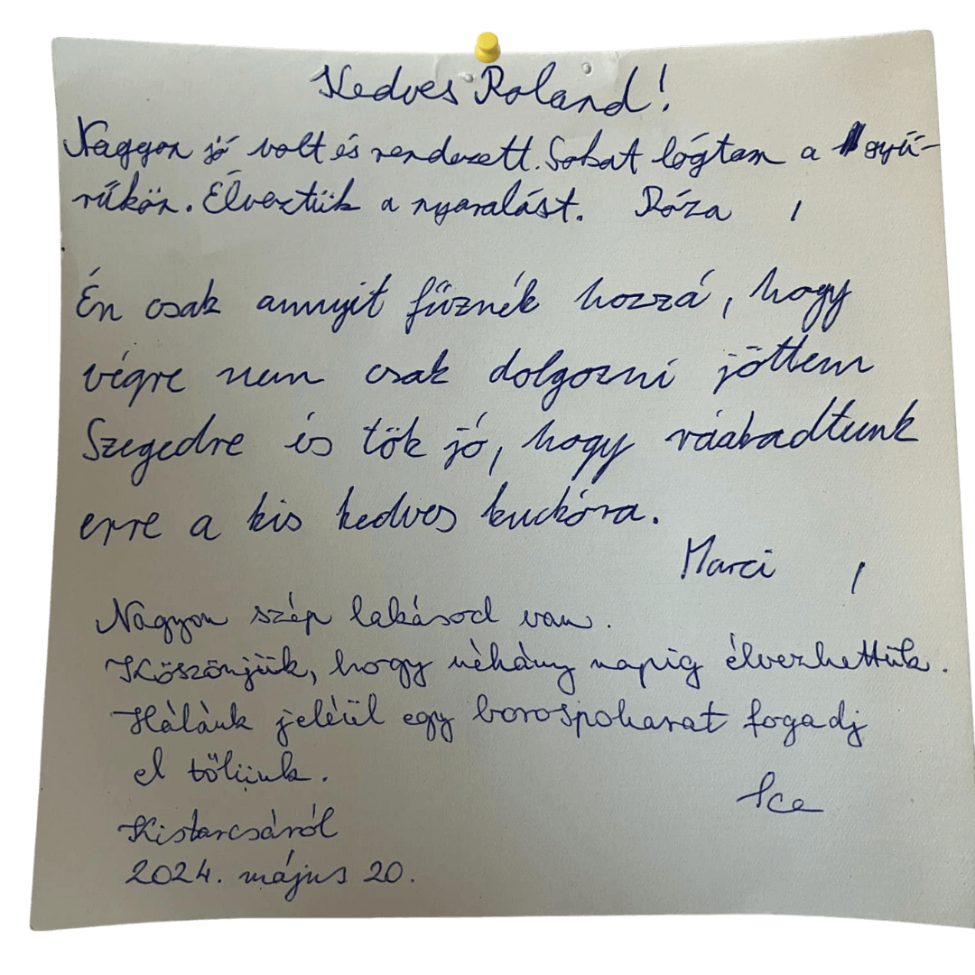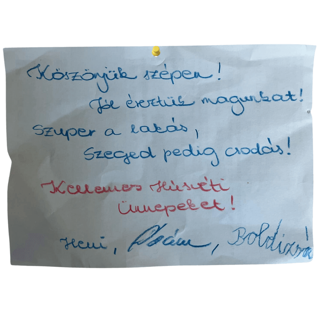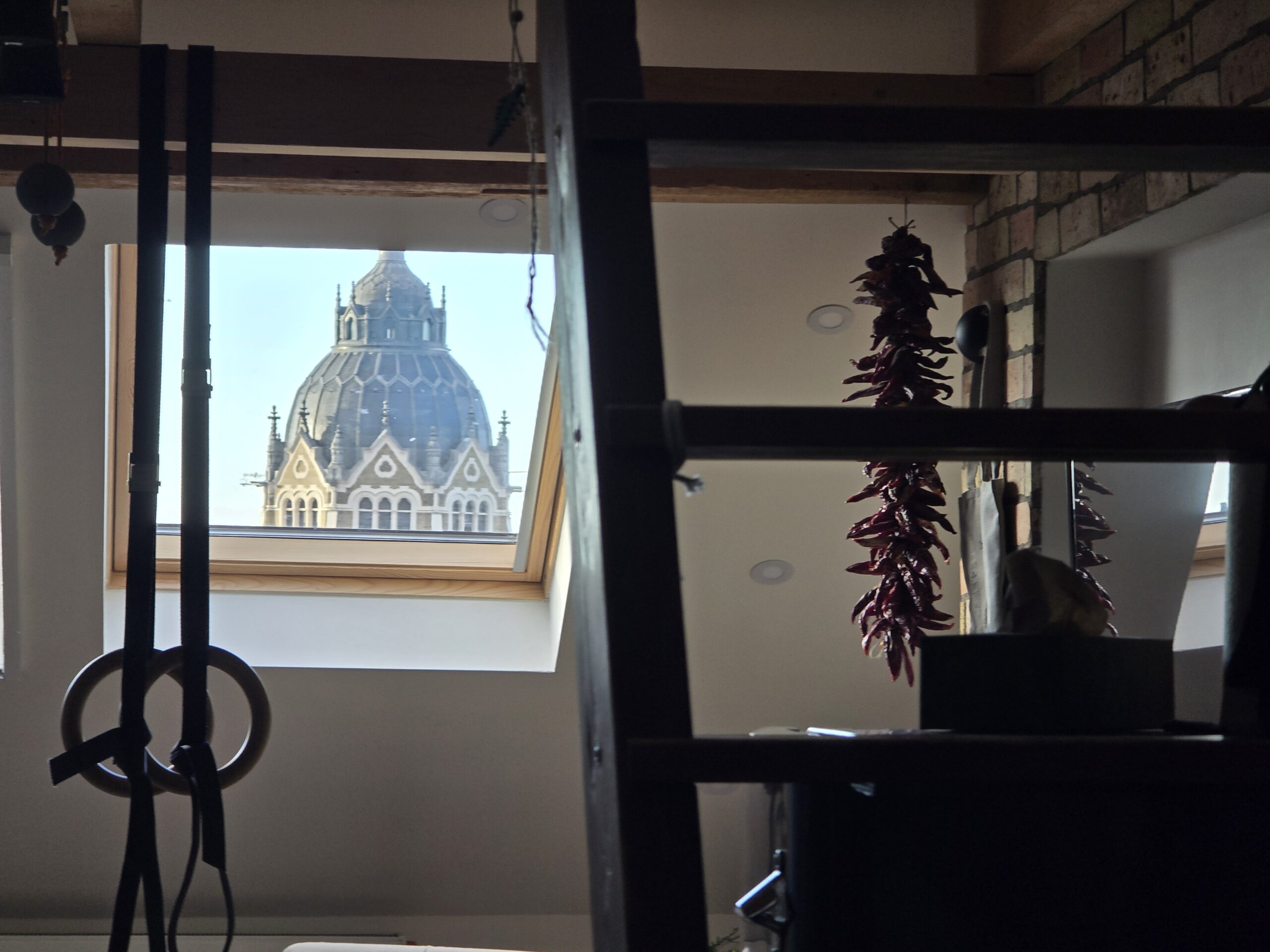 From the window, you can see the sun setting behind one of Szeged’s landmarks, the synagogue (the fourth largest in Europe).